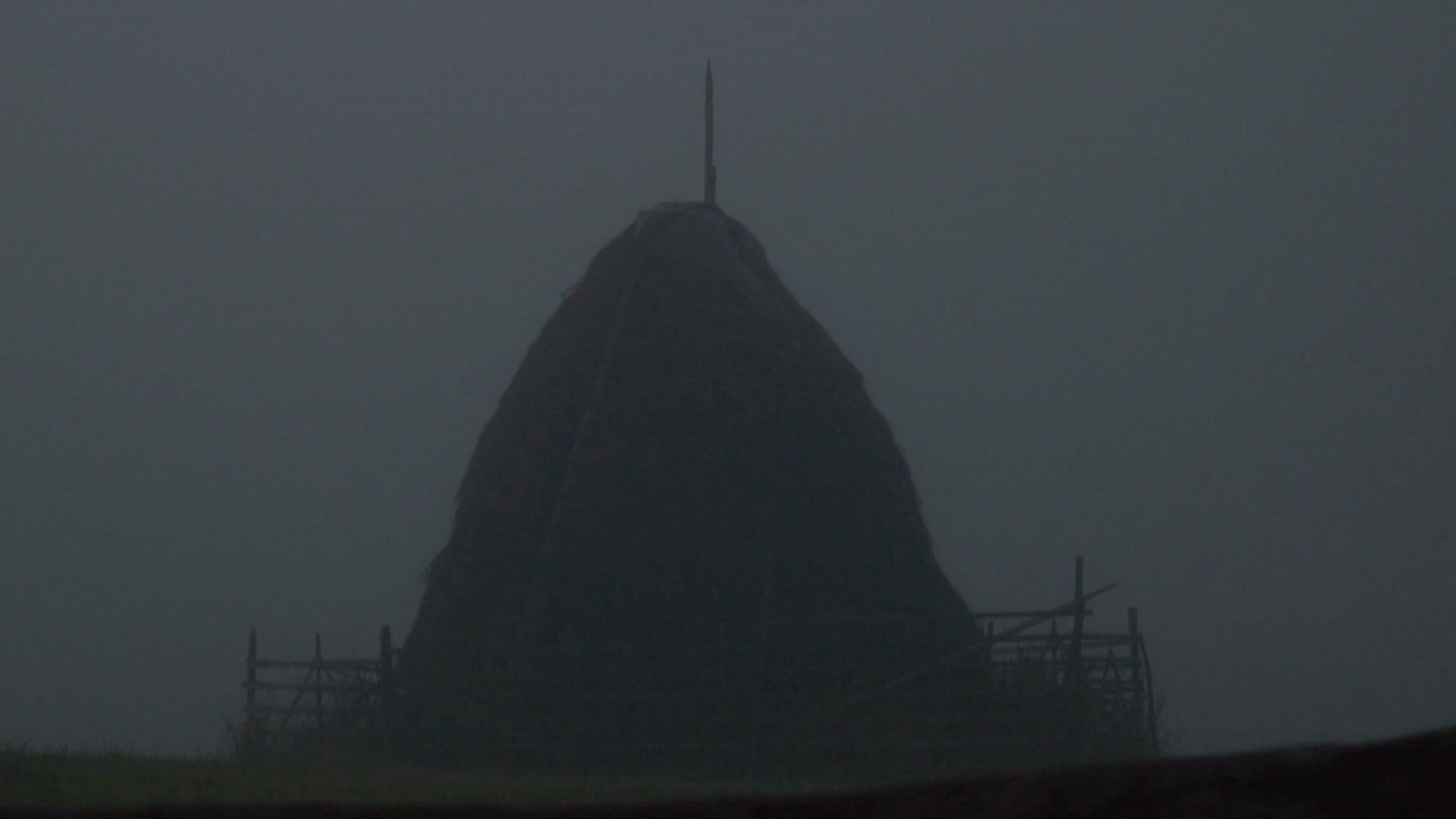 The complexity of this exhibition [Trouble with Realism] and its mental correlations might best be condensed in this short video by Ulrich Polster. For a few minutes we see, greetings from Claude Monet, a heystack. Wether we are looking at a freeze frame or a cinematic shot is hard to tell. One thinks to observe how haze scraps are slightly moving, but this might be as well an illusion. This reference to art history is broken up by the title of this work: Bosnia and Herzegovina (Han Pijesak, Republika Srpska, 07.08.2007).