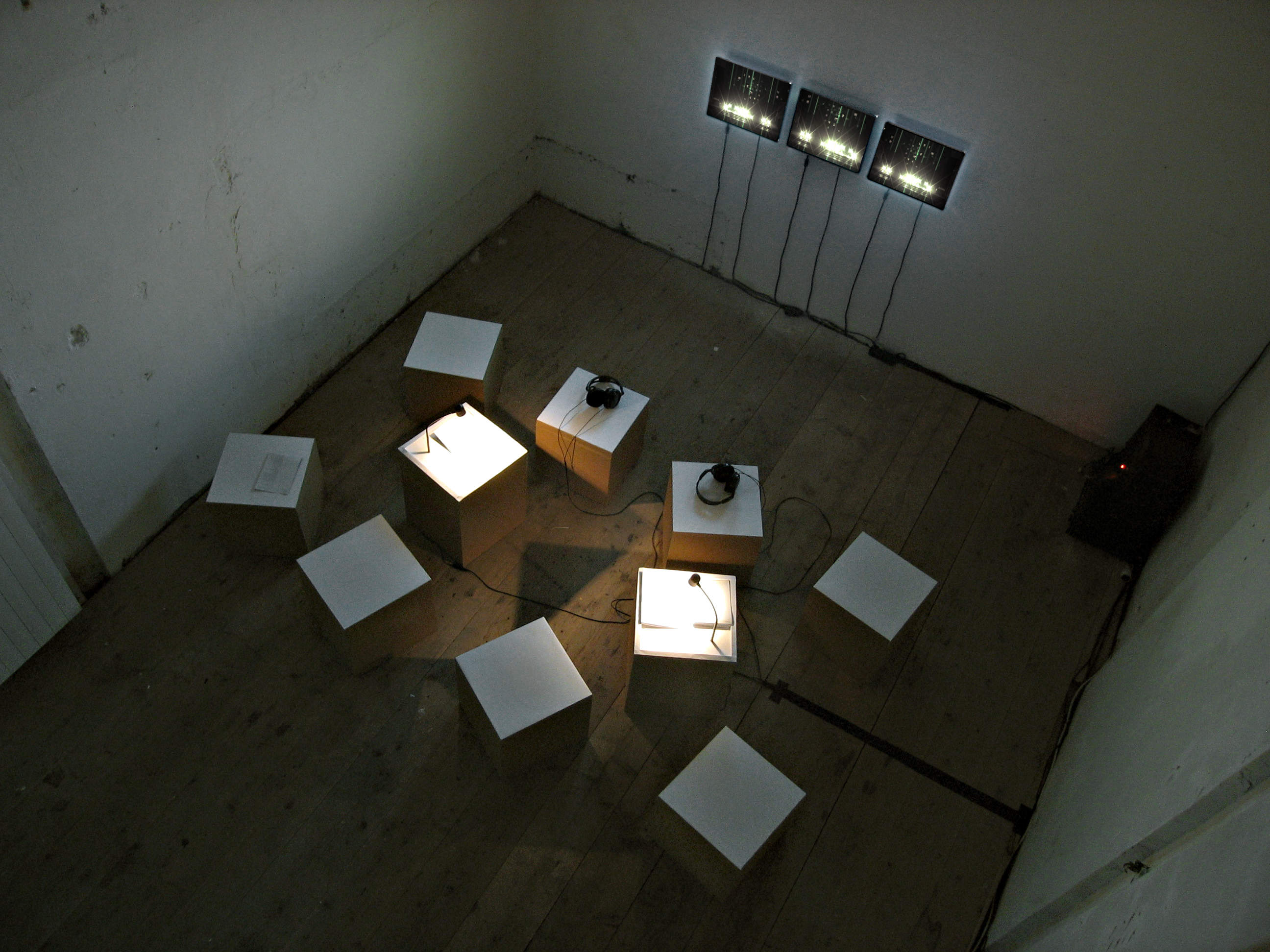 versprengung /text We started off our collaboration with a common will structure. We began with a formal vision that was to bring our individual processes together, and give us clarity and security. But our tendency to quote, to recycle our own sounds ans images, and the pursuit of each our own artistic handwriting changed the structure and eventually dissolved it comoletely. At the end of this process there was a pause, a concentration on the Versprengung, the scattering, which allowed us to let something arise that was outside each of our separate worlds.