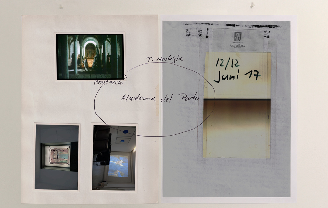 Berlin based artist Ulrich Polster shows in his fifth solo show at Galerie Jocelyn Wolff moving and restaged images that mirror his recent Italy experience. As a guest in the hide away of German romantic Olevano Romano and triggered by the death of his mother, classical landscape and art became quiet an ambiguous and fractured observation in which beauty and sorrow meet. In between meditative film projection and interactive photography extensions up to existential image markers in a twin projection image experiences are challenged and enlarged.