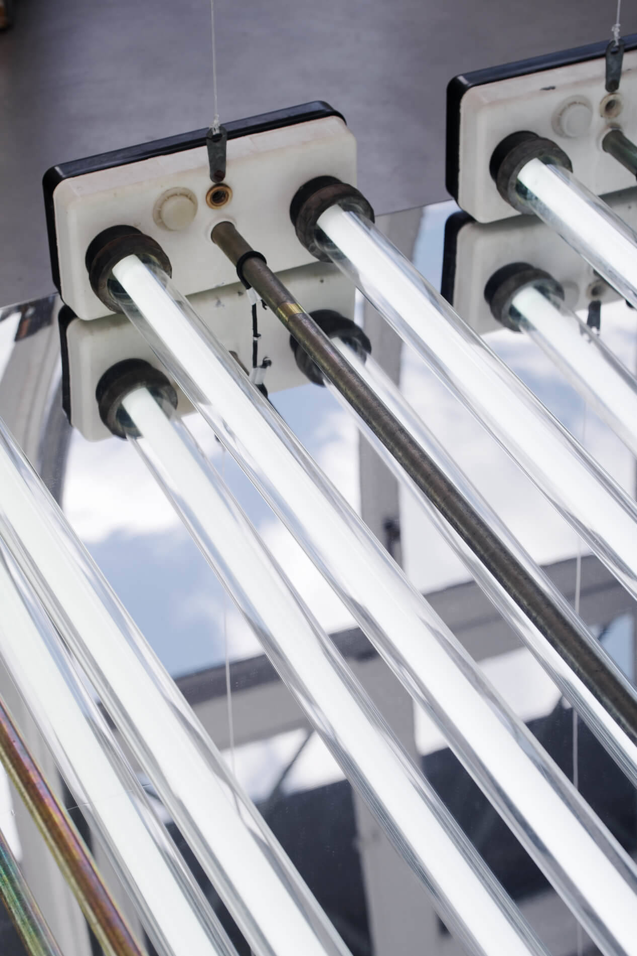 14 fluorescent tubes, mirror, microphones, amplifier, 166x2656cm