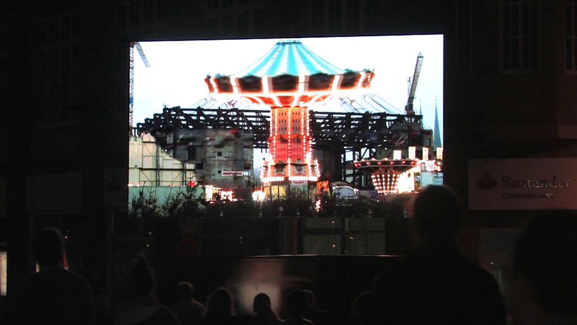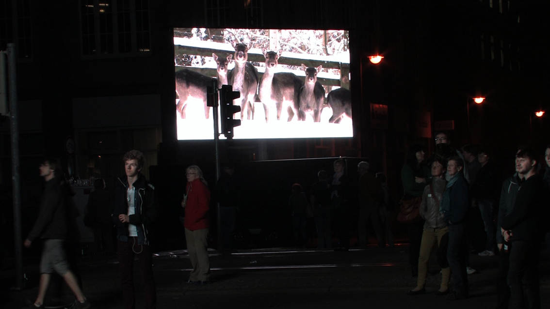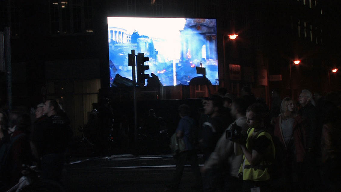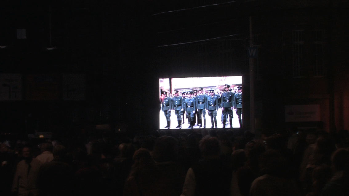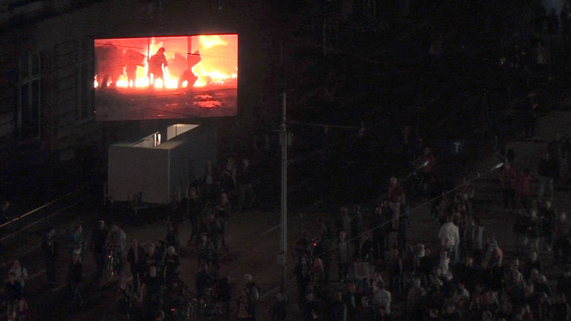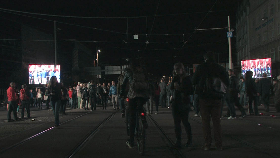 This video/sound installation examines the slogan “We are the people” with regard to its social relevance in 1989 and today, focusing on its inherent meaning in the light of the misuse it experiences from society and the media, on the one hand, and its romantic idealisation on the other. At the same time the piece inquires into the current state of affairs in Europe and discovers the local in the European context, and vice versa.